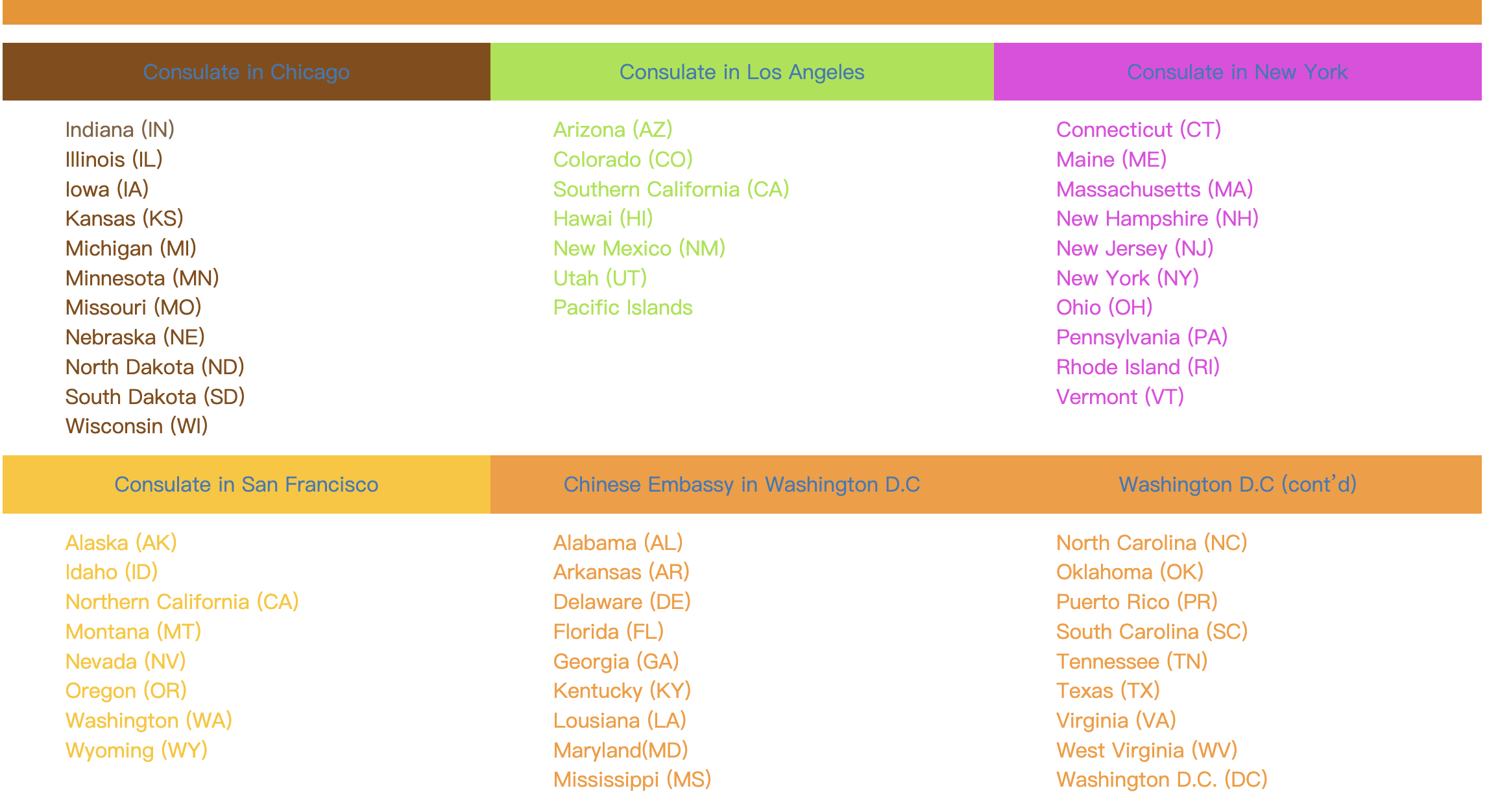 Below is a comprehensive list of the Chinese Embassy and its Consulates General in the United States, including their addresses, phone numbers, websites, and the states they serve: