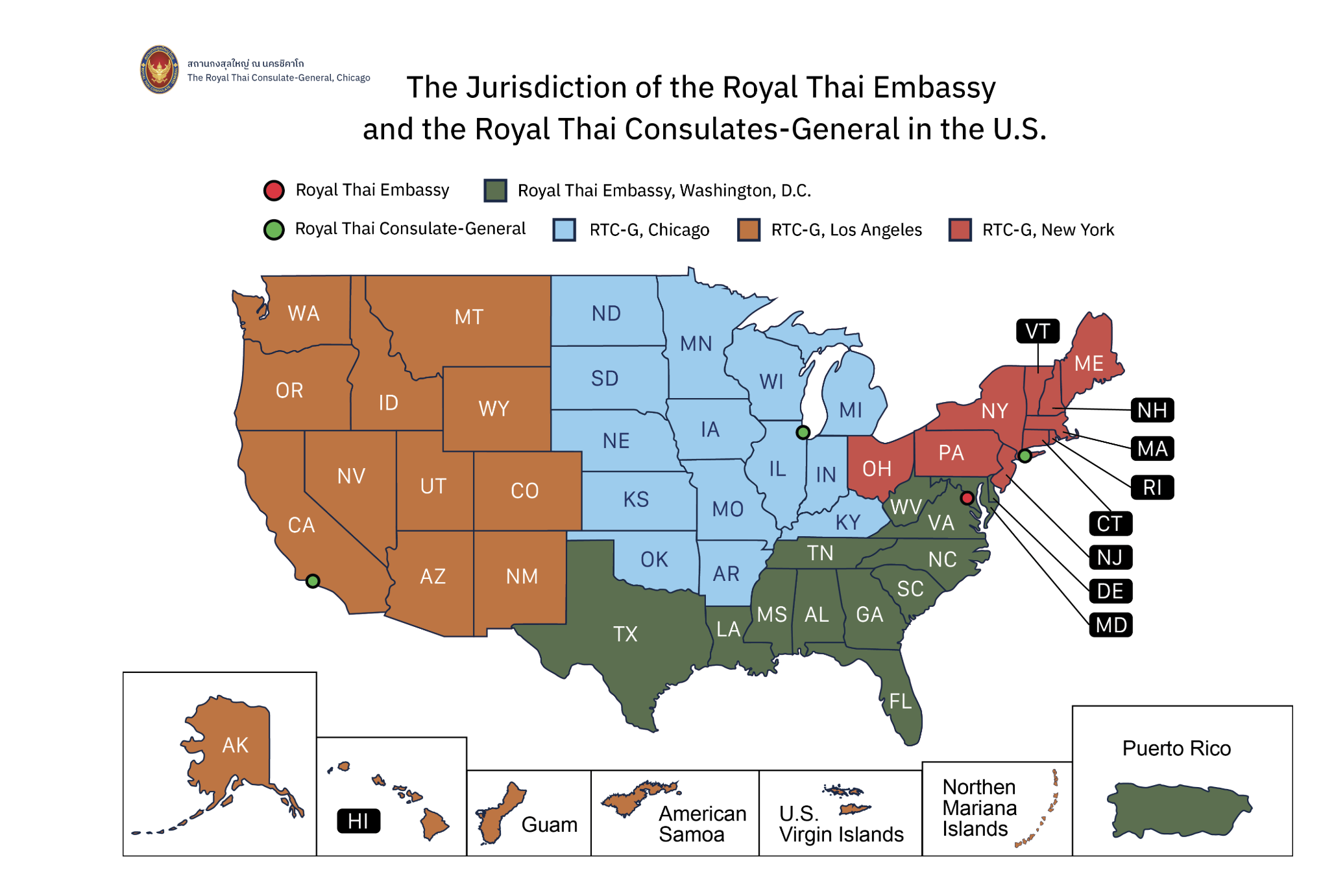 Yes, Thailand Consulates are jurisdictional. This means each consulate handles visa and passport services for residents of specific U.S. states.