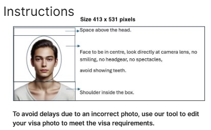 You should be facing the camera directly, with your shoulders visible and ears unobstructed. Head coverings and glasses are not allowed. Maintain a neutral expression—avoid smiling or showing your teeth.