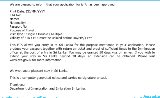 For further information and updates, applicants should visit www.eta.gov.lk.